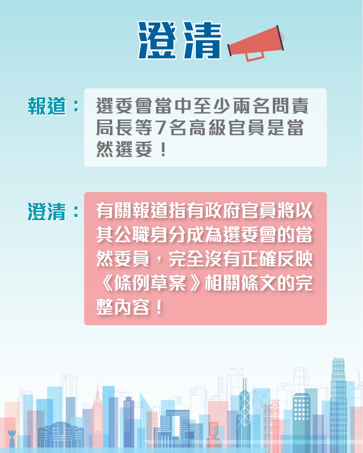 針對有媒體報道稱,選委會當中至少兩名問責局長等7名高級官員是當然選委,特區政府今晚做出澄清。