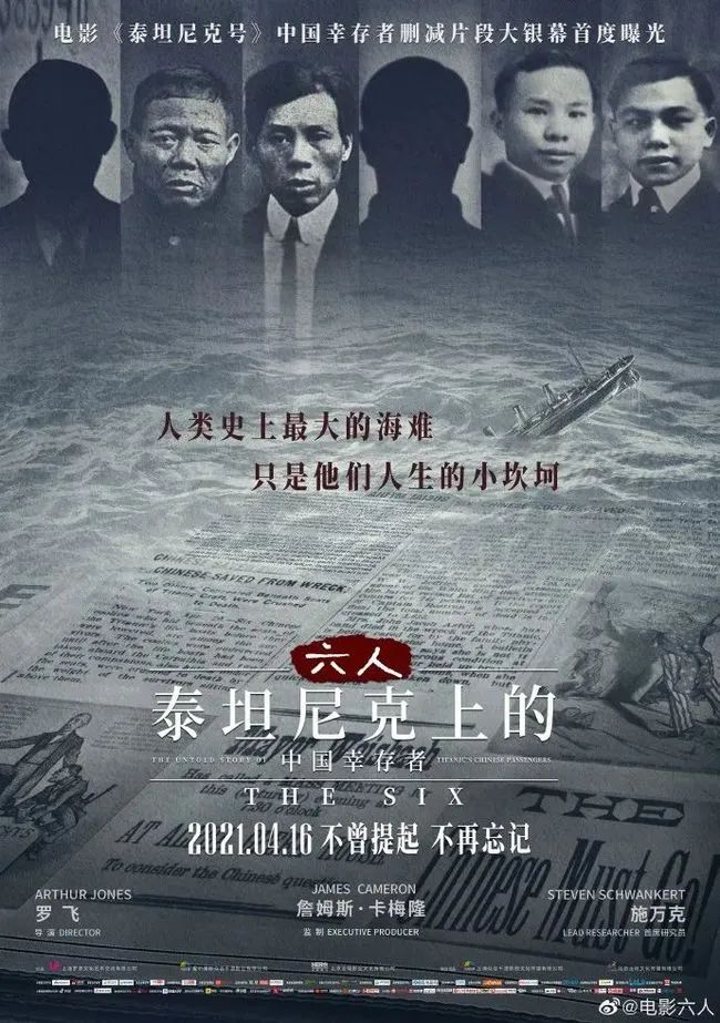 1912年4月14日,鐵達尼號沉沒,2224名船員和乘客中僅有705人倖存,其中包含6名中國人。