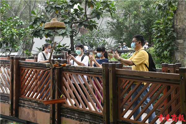 尤德觀鳥園位於香港公園內,以已故的前香港總督尤德爵士命名。園內集合了75種不同的雀鳥,當中不乏一些瀕危物種,是六百多隻大小雀鳥的住所,大部分鳥類都是馬來群島的品種,在館內自由放養,讓你能在高低錯落的步道上欣賞百鳥身姿。由於園內有大量雀鳥,為了旅人們的安全,工作人員們對於園內衛生情況一絲不苟,確保大家能在絕對清潔的情況下安心觀鳥。(蔡啟文攝)
