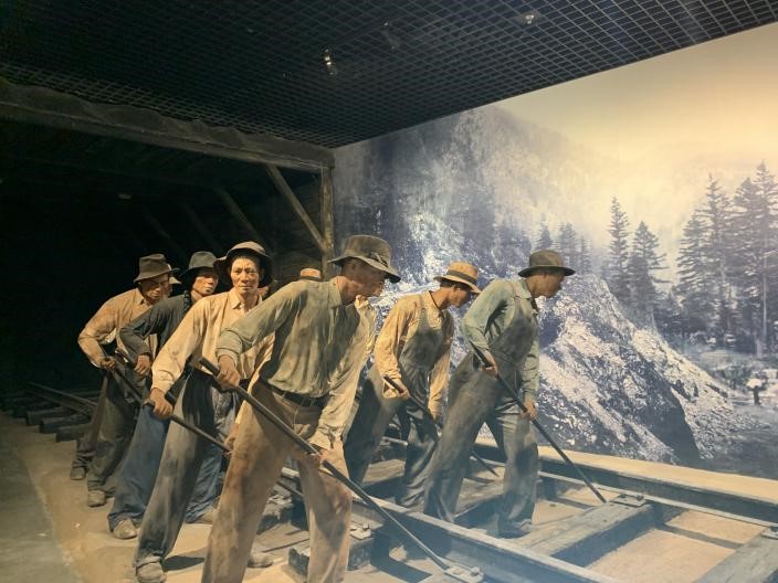 江門五邑華僑華人博物館展出的美國華工群像雕塑。人民日報記者 吳姍攝