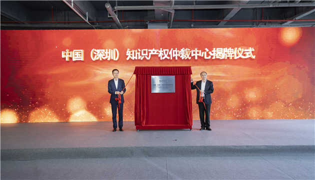 黃湘岳區長和劉曉春院長共同為中國(深圳)知識產權仲裁中心揭牌