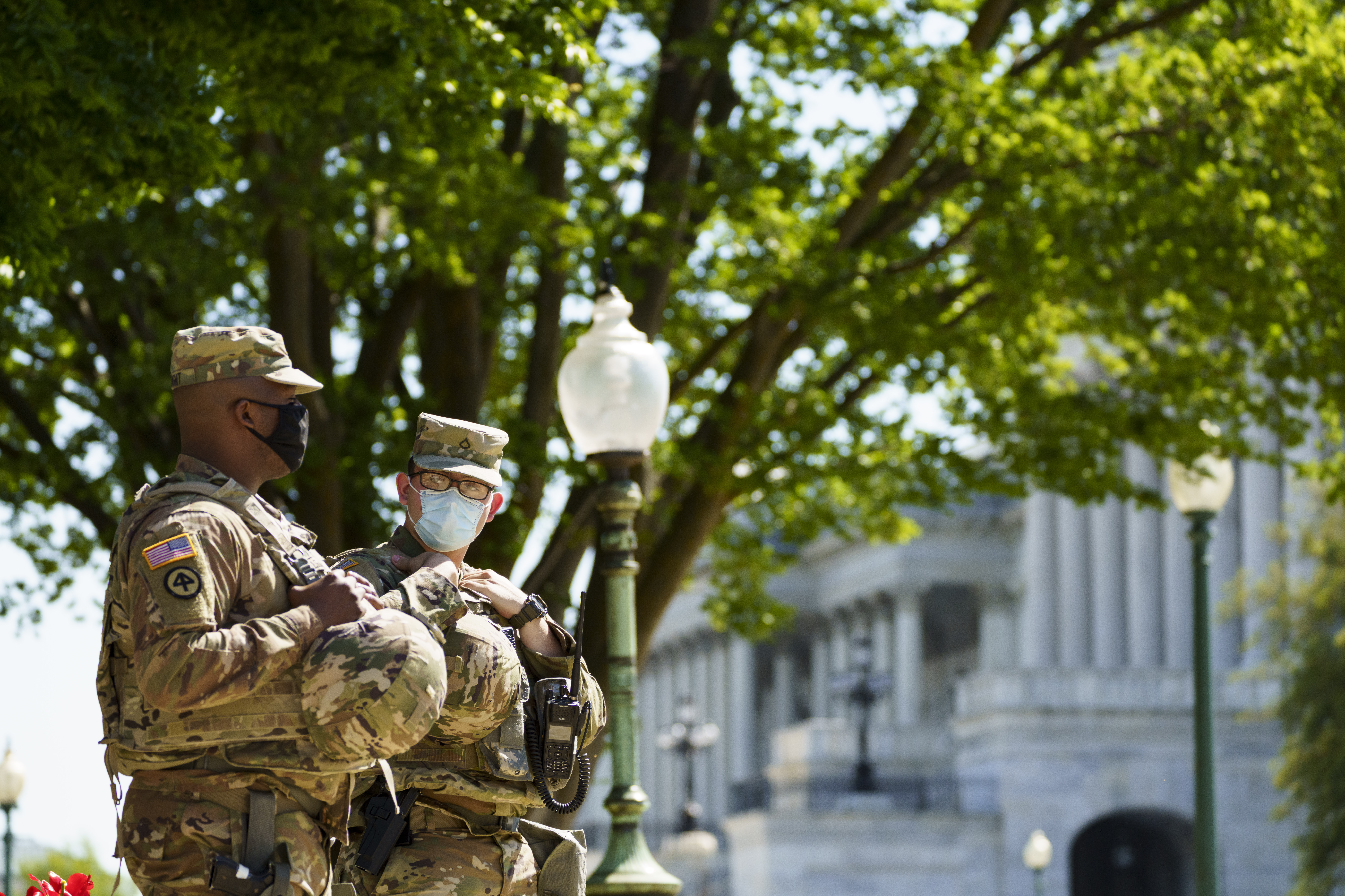 4月20日,在美國首都華盛頓,國民警衛隊成員在國會附近警戒。新華社