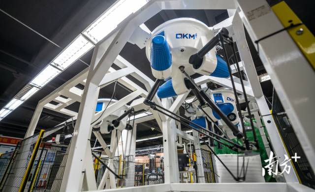 東莞松山湖機械人產業基地內,自動分揀垃圾的機械人正在演示其功能。董天健 姚志豪 攝
