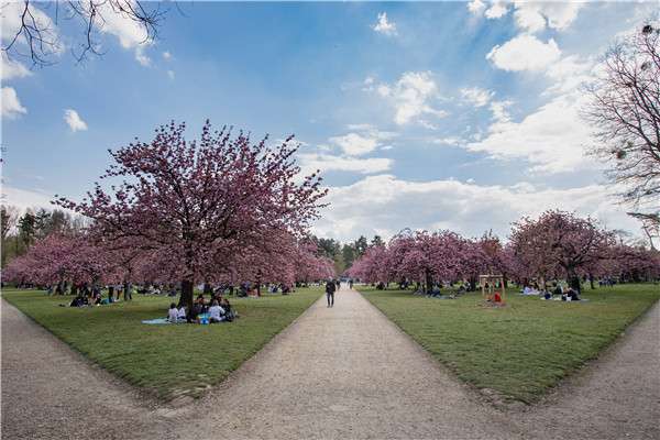 公園裏有400棵櫻花樹,還有其它地方很難見到的白色櫻花。不同顏色的櫻花分成兩處,北邊Bosquet Nord的粉紅櫻花林,與南邊Bosquet Sud白櫻花林。(图源:新華社 )