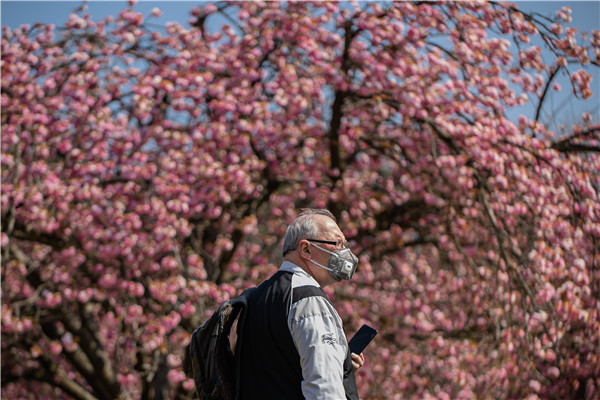 4月20日,人們在法國巴黎近郊的國璽公園欣賞櫻花。 奧雷利安·莫里薩爾 攝