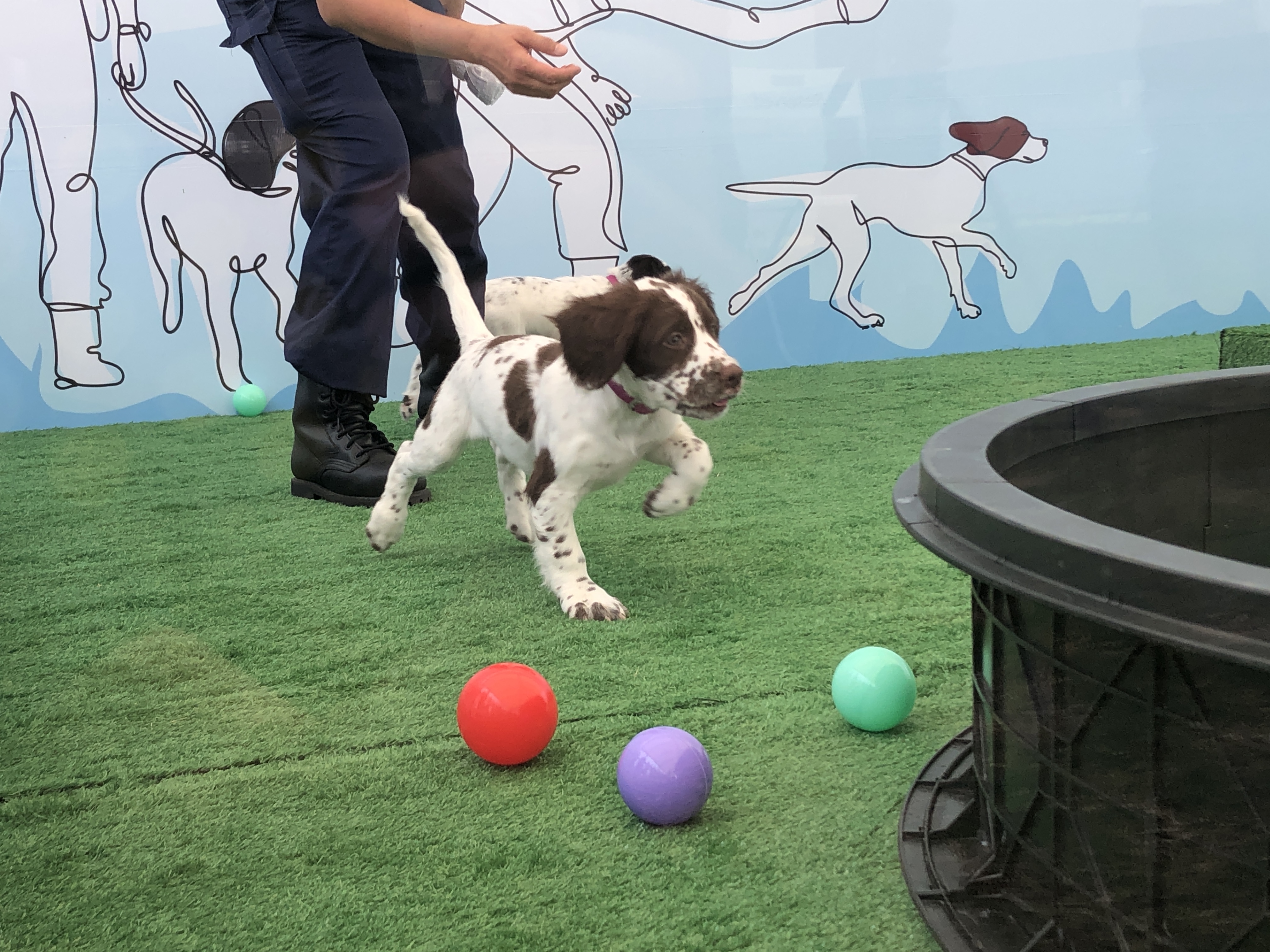 海關搜查犬課監督馬少芳表示,6隻幼犬現正接受遊戲模式為主的基礎訓練,培養社交能力及感官認知,海關稍後會將獲分配的4隻犬訓練成搜查犬。