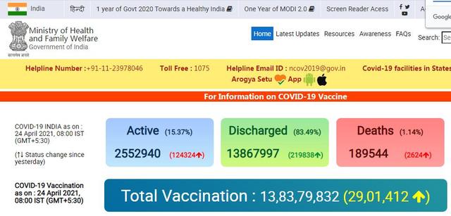 印度第二波新冠疫情持續蔓延,單日確診個案連續第三日創新高,新增逾34.6萬宗個案,累計確診達16610481例;死亡人數亦持續攀升,再多2600多人不治,累計死亡189544人。