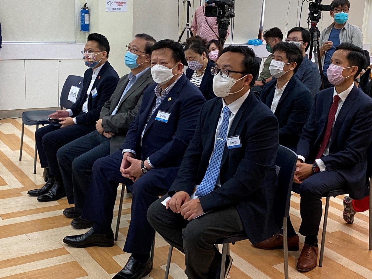 全國人大常委會委員譚耀宗(左二)、全國人大代表陳勇(左)、全國政協委員龍子明(右二)、副主席張永達(右)。