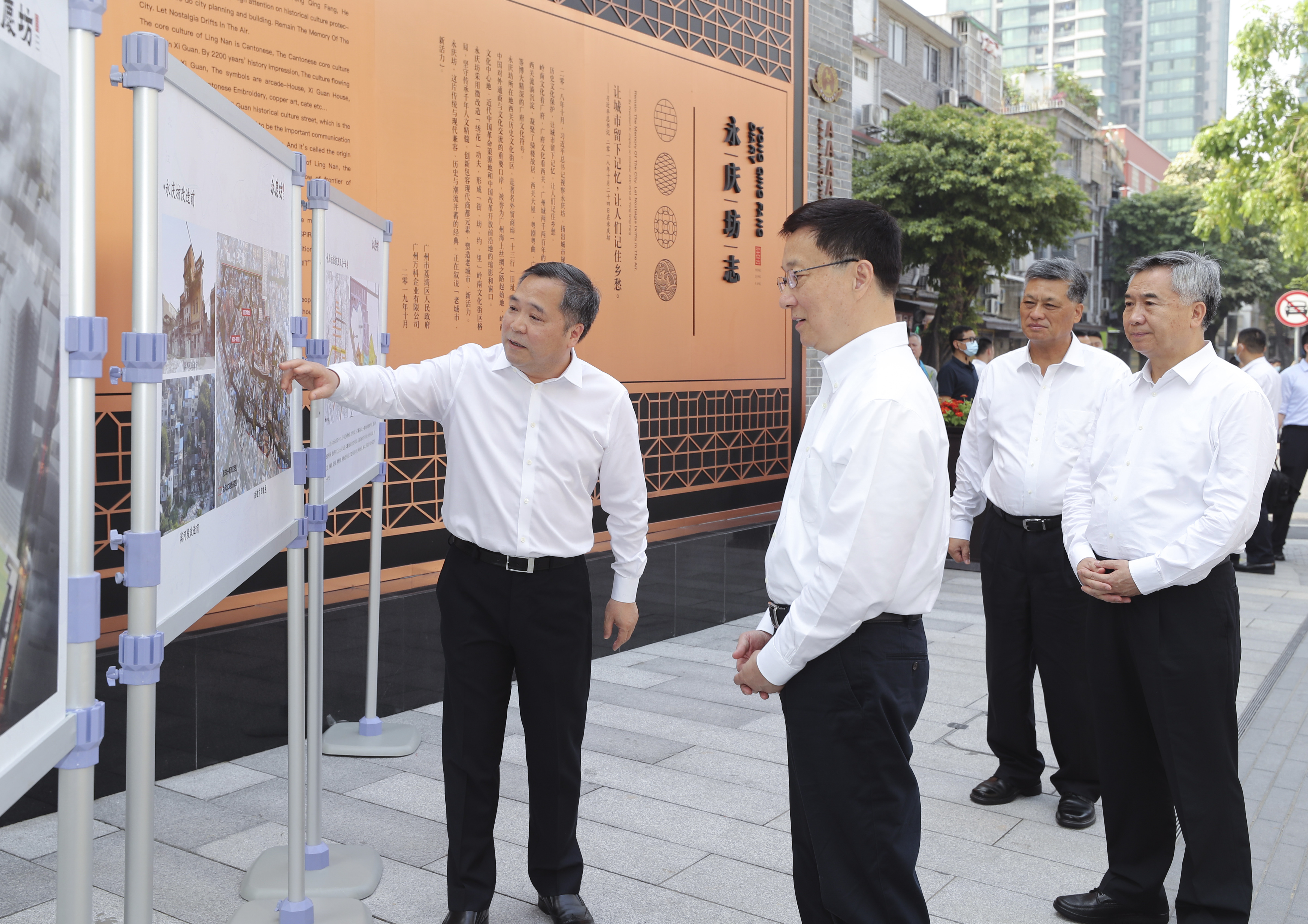 韓正走進廣州永慶坊微改造項目,考察城市更新情況;到廣州塔俯瞰廣州全貌,聽取城市規劃建設等情況匯報;到廣州閱江路會展西碧道示範段、海珠國家濕地公園,調研城市公共設施建設、水環境治理情況;前往汕頭僑批文物館、陳慈黌故居和潮州廣濟橋、饒宗頤學術館等,了解潮汕文化保護傳承及古建築修繕保護情況。他指出,城市更新要因地制宜,不能大拆大建,要加強對傳統文化和歷史遺蹟保護,使大家記住歷史、留住鄉愁。要加強水環境治理,還綠於民、還景於民,讓人民群眾享受到更加美好的生態環境。