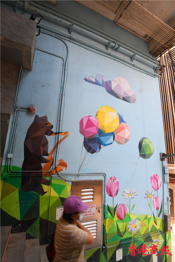 藝里坊主要構思來自紐約曼哈頓Soho的街頭藝術、倫敦北部舊住宅區Chalk Farm的30幅壁畫以及韓國梨花洞均變身為壁畫村,將藝術融入生活且成為著名景點,政府與發展商合作與區內多幢舊樓業主立案法團協議,獲准翻新外牆,改善舊區環境包括修葺殘舊樓梯及重鋪人行道等。同時邀請了17位本地及國際知名藝術家,以不同創意及風格在建築外牆、樓梯及地下等空間作畫布,創作了26幅壁畫藝術,成功打造了全港首個以壁畫活化都市的藝文蘇豪小區。(蔡啟文攝)