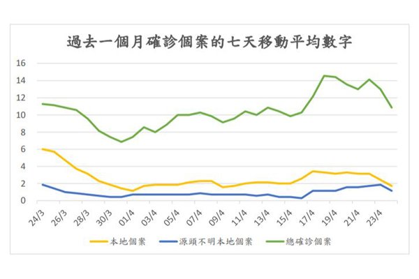 截至4月25日的4月總確診個案為269宗,超過80%是輸入個案,本地個案數字維持於低單位數水平,更有四日沒有任何本地個案,顯示疫情整體受控。我們原本擔心的復活節長假期因市民有較多社交活動而引致大規模的個案群組也沒有出現,但在4月中首次在社區發現涉及N501Y變種病毒株的確診個案則令我們大為緊張。衞生防護中心嚴陣以待,實施嚴格的追蹤、檢測和檢疫措施,至今並未發現變種病毒株在社區擴散,但我們會持續密切留意情況。