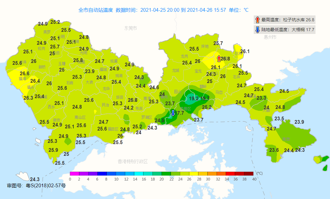 26日深圳市日最高氣溫圖
