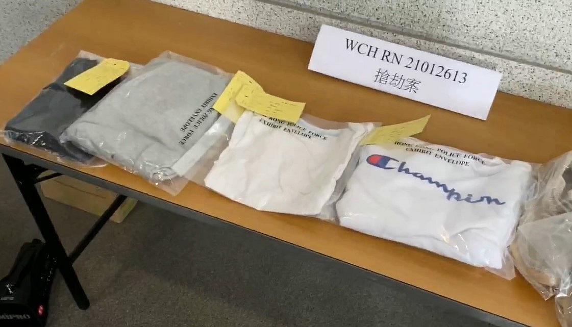 被捕男子25歲,報稱無業,涉嫌「搶劫」罪,現正被扣查。據悉,疑犯有黑社會背景。