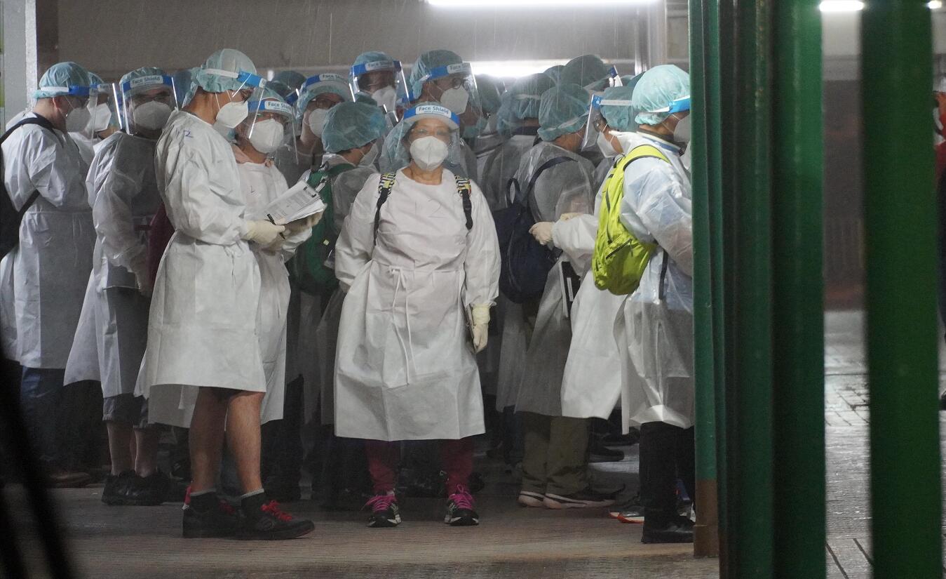 受檢人士會獲安排到採樣站接受核酸測試,由專人以咽喉和鼻腔合併拭子採樣。在所有人士有檢測結果前,受檢人士必須留在處所內,以減少交叉感染的風險。政府會為行動不便的人士和長者安排上門採樣。(蔡启文摄影)