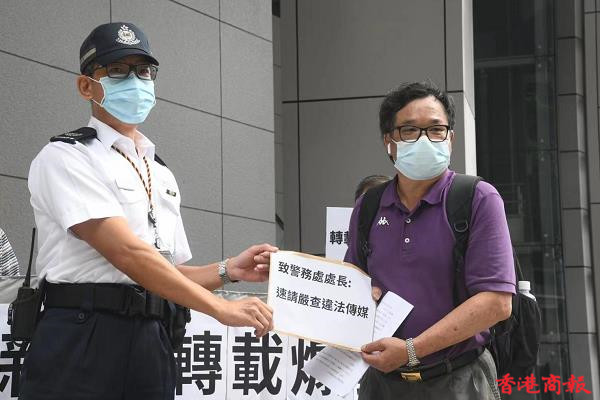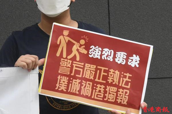 「的士司機從業員總會」致信總警,要求國安處立即展開調查,嚴懲「立場新聞」。亦有市民抗議「立場新聞」轉載煽動恐怖活動的文章,斥其「播毒」禍港,威脅港人人身安全,強烈要求警方嚴正執法,撲滅禍港「獨報」。(記者 蔡啟文攝)