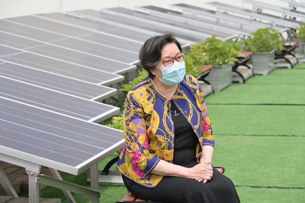 政府新聞網表示,保良局蔡繼有(下圖)學校在去年6月完成安裝工程,並於天台太陽能板旁擺放盆栽,還有用環保物料製成的長椅供師生享用。
