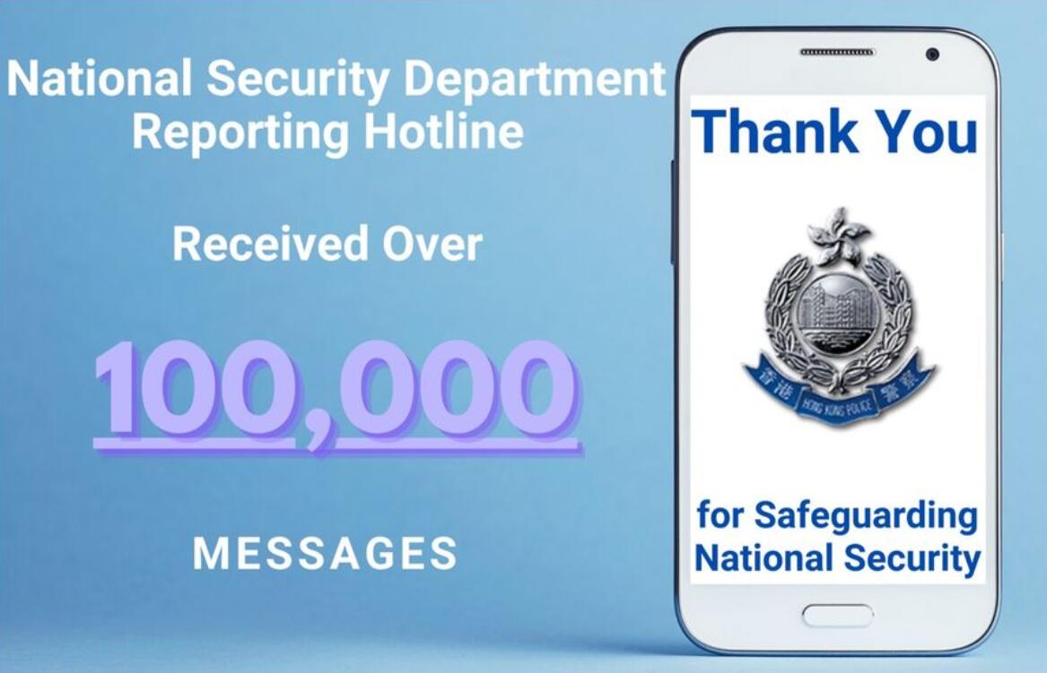 警方今日(10日)在社交網站表示,過去半年「國安處舉報熱線」共收到超過10萬條訊息。