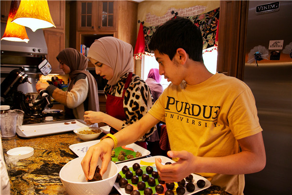 5月11日,美國肯塔基州路易斯維爾的法蒂瑪·祖海麗和她的兩個孩子在家裏製作中東糖果。