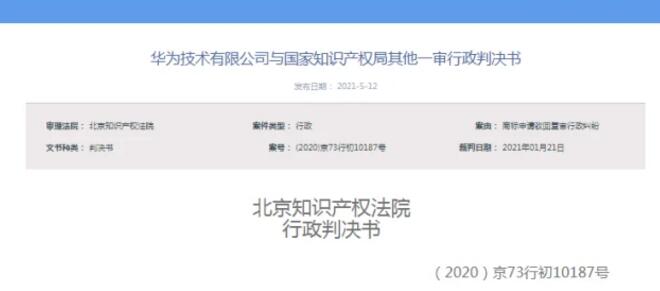 據內地媒體消息,5月12日,北京法院審判信息網公開了華為技術有限公司(以下簡稱「華為」)與國家知識產權局的相關判決書。判決書顯示,華為的訴訟請求被法院駁回。