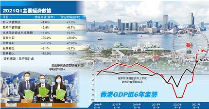 港府昨日公布最新經濟數據,今年首季GDP按年增長由預先估計的按年增長7.8%,向上修訂至7.9%。經季節性調整後按季比較,實質本地生產總值在第一季顯著增長5.4%,較上一季0.5%的升幅明顯加快。特區政府經濟顧問歐錫熊分析指,香港經濟在今年餘下時間料會進一步復蘇,但考慮到變異新冠病毒出現,全球疫情依然嚴峻,經濟亦存在不確定性。2021年全年GDP增長預測與早前預測一致,增長3.5%至5.5%,若疫情往後改善,很大機會接近預測上限。