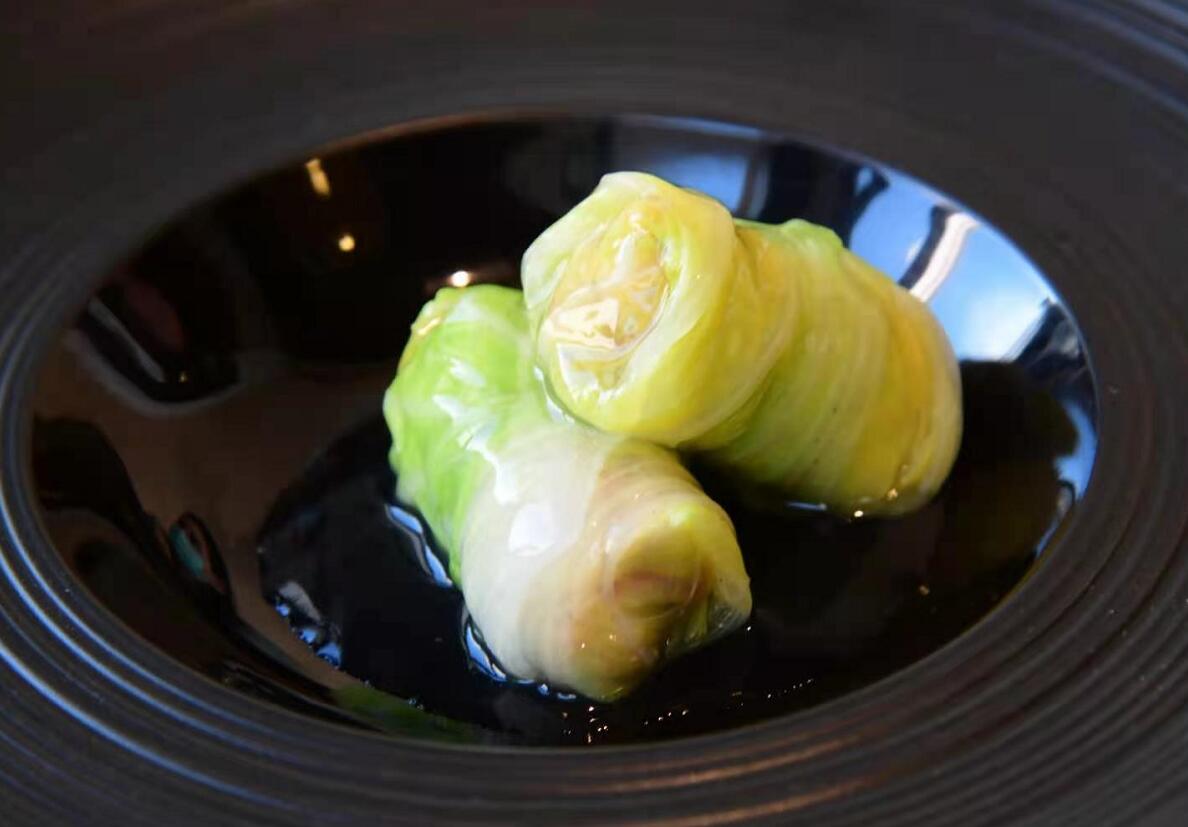 玉枕白菜乃是傳統手工名菜,以白菜包裹清香肉餡,飽滿晶瑩的外形如同「小枕頭」。
