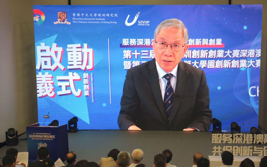 香港中文大學指深圳研究院在12日舉行第13屆中國深圳創新創業大賽深港澳高校預算賽暨第3屆深圳虛擬大學園創新創業大賽啟動儀式,深圳市科技創新委員會黨組成員邱宣、深圳市南山區科技創新局科協常務副主席殷明華、中大副校長陳偉儀、中大深圳研究院院長任揚、澳門大學副校長葛偉在儀式中致辭。