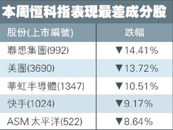恒生指數14日升308點,重上28000點關口,成交額1508.71億元。惟資金炒股不炒市,友邦保險(1299)單隻股份貢獻大市逾半升幅。總結全周,恒指累跌583點,連跌3周。科指續跑輸,收市跌34點或0.5%,報7565點,全周累挫約5%,再創去年11月以來收市新低。