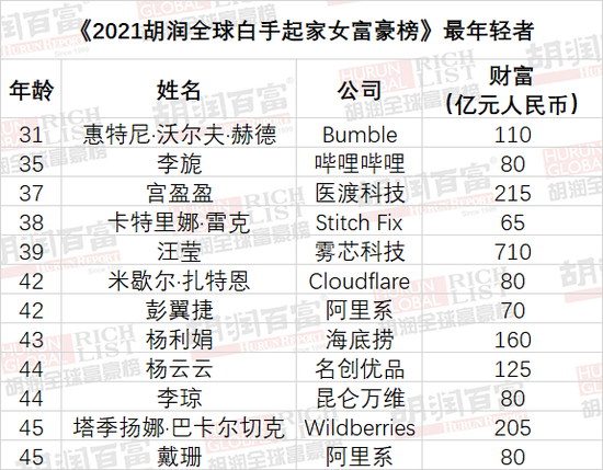 榜單還顯示,43位新人中,其中33位來自中國。新人中排名最靠前的是電子煙品牌悅刻39歲的汪瑩,財富710億元排名第八,成為最成功80後女企業家;其次是日化品牌藍月亮56歲的潘東,財富650億元排名第十。