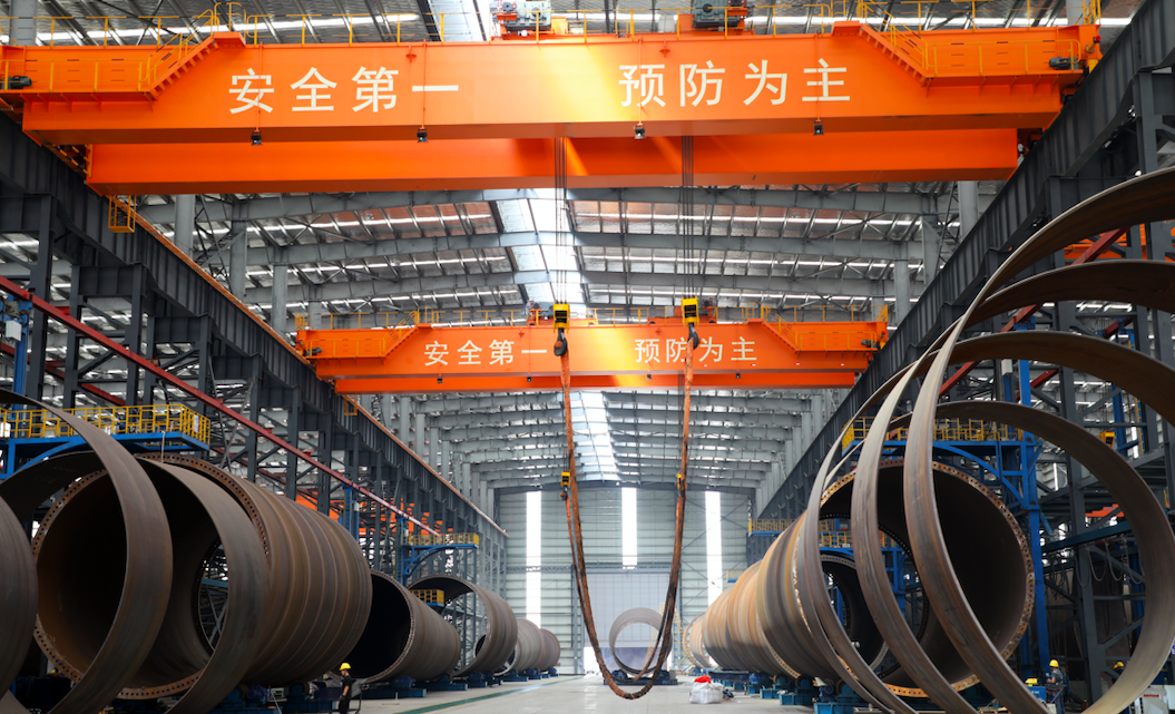 明陽智能海上風電產業園內設備高效運轉、操作者各司其職。