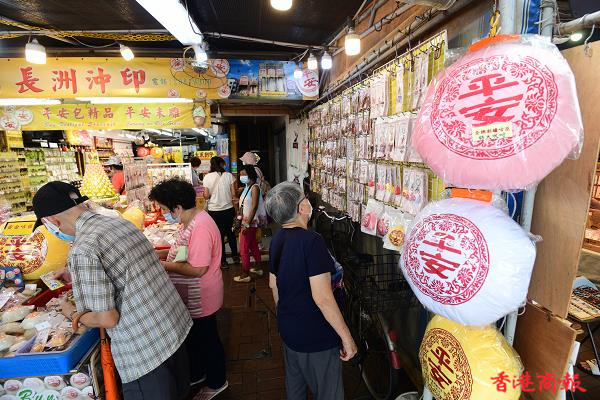 今天是佛誕,一年一度的長洲太平清醮活動,在疫情下已連續兩年取消飄色巡遊及搶包山活動,但有在北帝廟復辦神功戲及送神儀式等,連三座大包山也由本來約十五點五米高,減至四點六米高。而神功戲須在現場觀眾使用安心出行程式下進行,多項活動一切從簡。有店舖仍有出售平安飽,但不算大量製造,仍吸引市民購買應節。