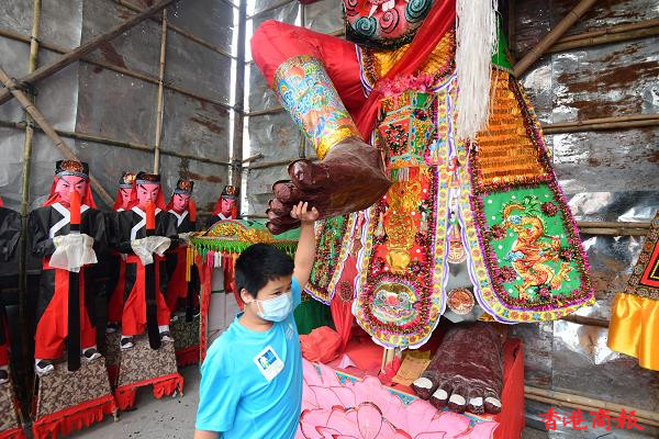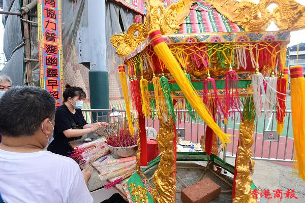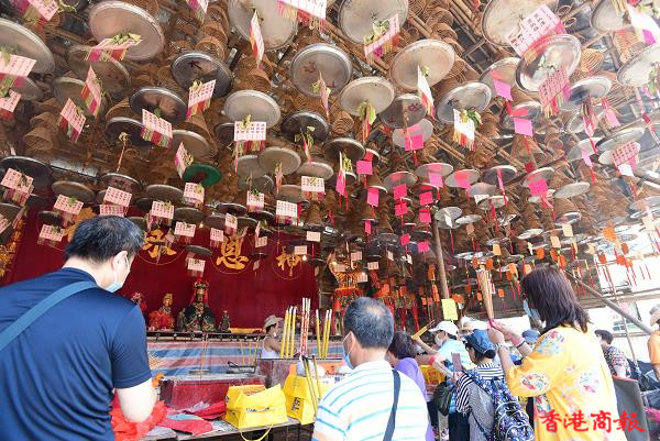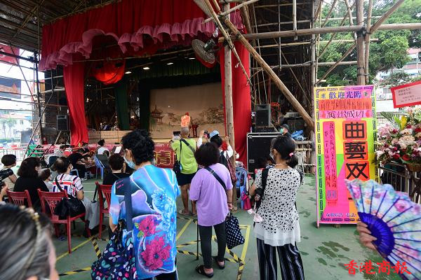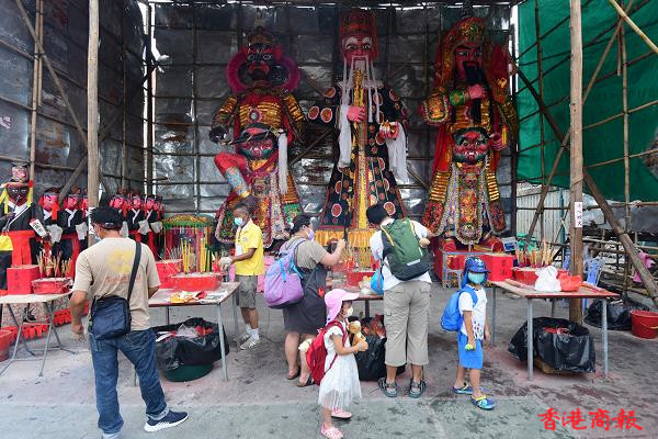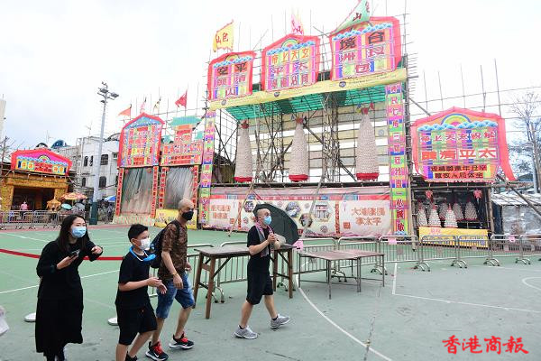 雖然今天沒有飄色及搶包山,在酷熱天氣警告下,仍有不少市民湧到長洲享受佛誕假期,感受長洲簡約活動的氣氛習俗。太平清醮是一種保平安的祈安醮,亦有保平安祈求疫症消失之意,過往太平清醮是定期舉行。(記者 崔俊良攝)