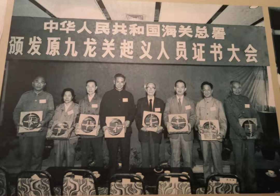 早在南頭和深圳鎮解放之前,10月13日,九龍海關「關長」經偉菲就在我地下黨工作下,提出願帶領全關起義。10月14日解放軍抵達東莞樟木頭,深圳羅湖山頂的九龍海關緝私總部就已經升起了五星紅旗,這是在深圳地界升起的第一面五星紅旗(事實上,受命準備參加接管廣州的上千名幹部集結大鵬王母墟,以及沙頭角中英街的群衆,在10月1日上午同時升起一面五星紅旗,慶祝新中國成立)。10月21日,經偉菲順應歷史潮流,在香港中環的九龍海關總辦公室通電北京,宣布起義,受到國務院海關總署的複電嘉獎。同日,我「九龍海關軍事接管委員會」主任劉汝琛率李國安、藍傑、譚剛、廖強五名委員順利接管了九龍海關。