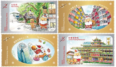 香港是國際都會,有許多特色街道和景點,不少電影都選擇於香港街頭取景拍攝,無數香港和國際的經典電影在此誕生。香港郵政特意挑選四個電影拍攝熱點,包括九如坊、「怪獸大廈」、國際金融中心二期和珍寶海鮮舫,於12月2日(星期四)發行一套四枚「電影中的香港場景」郵票。聖誕老人更將化身電影主角,在郵票上穿梭這些經典場景。郵票設計將用上活潑明亮的色調,配以金銀色邊框,節日氣氛滿載,陪伴大家歡度佳節。