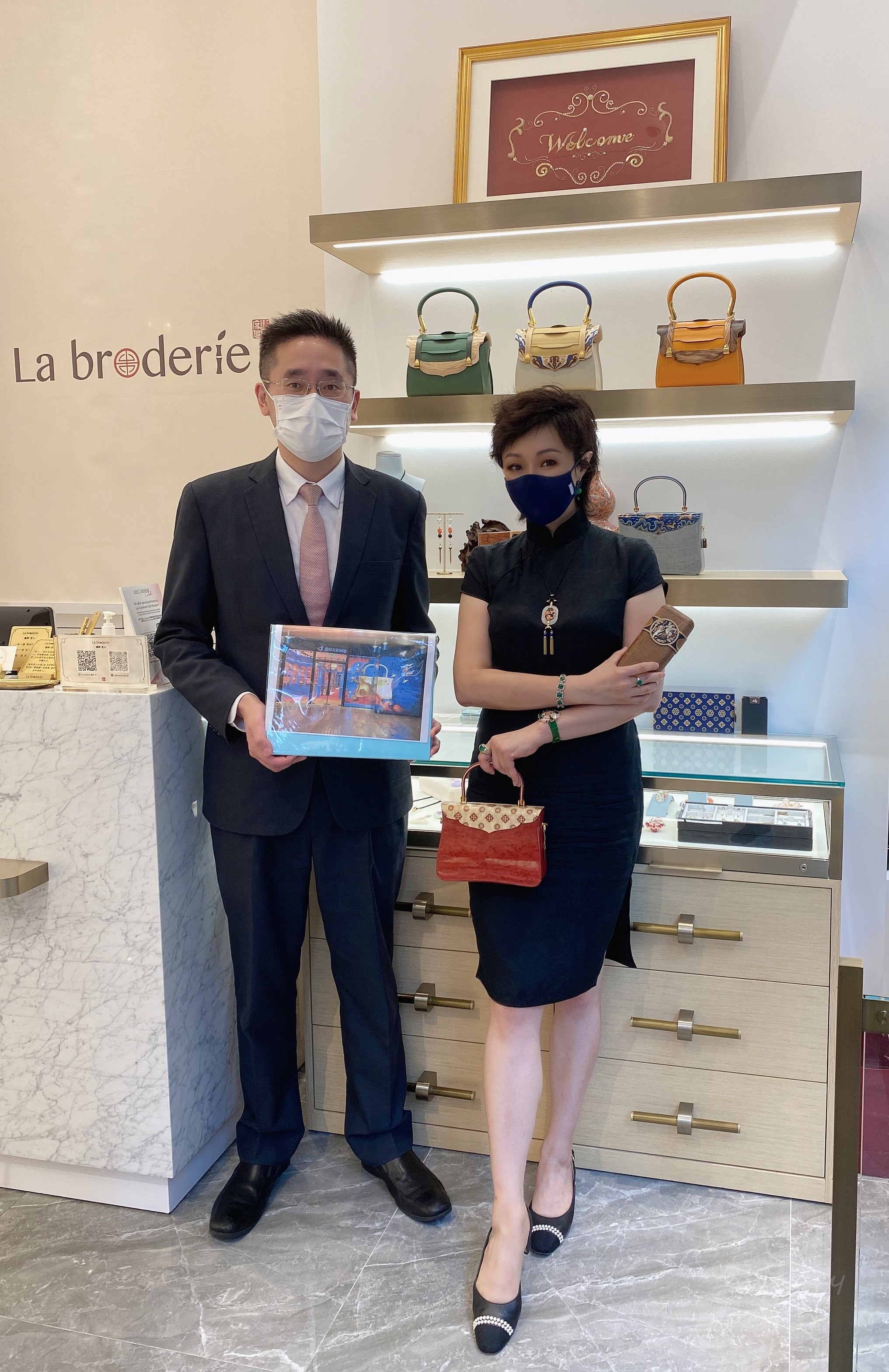 萬玉山房labroderie合作展示傳統手工藝精品應labroderie邀請,萬玉山房在「5-20/我愛你」這個特別節日,從5月19至23日,在香港銅鑼灣利園五期地舖1號與Labroderie合作展示傳統刺繡、字畫、玉雕、瓷器、木製鑲嵌漆器等傳統手工藝精品,吸引了眾多商界名流、社團友好前來捧場,商務及經濟發展局副局長陳百里、求知雅集會長陳偉新等亦專程前來支持。
