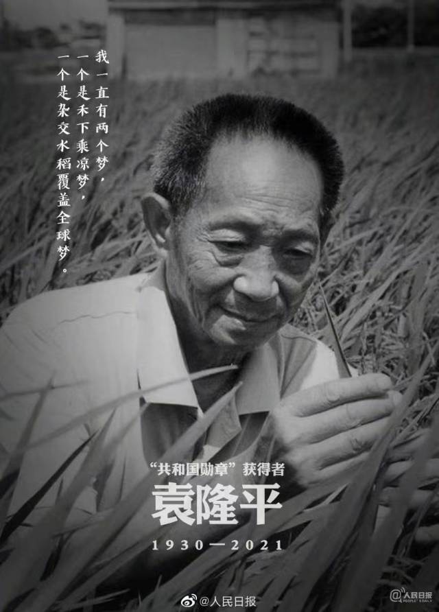 據新華社報道,「雜交水稻之父」、中國工程院院士、「共和國勳章」獲得者袁隆平,5月22日13點07分在湖南長沙逝世,享年91歲。