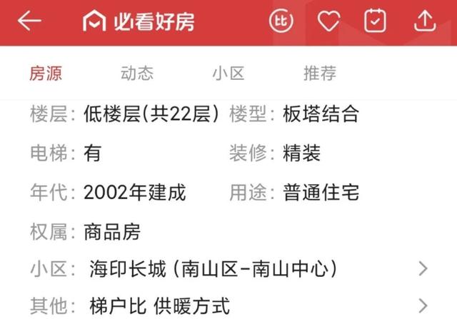位於南山中心區的海印長城也有降價情況,該樓盤配套的學位是附屬南山二外學府中小學。貝殼網顯示,該樓盤一74平米房源近兩周降價兩次,降價64萬。