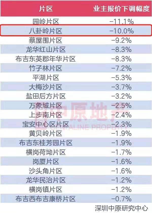 但深圳中原監測的數據顯示,4月18日-24日的一周內,八卦嶺片區報價下跌10%。