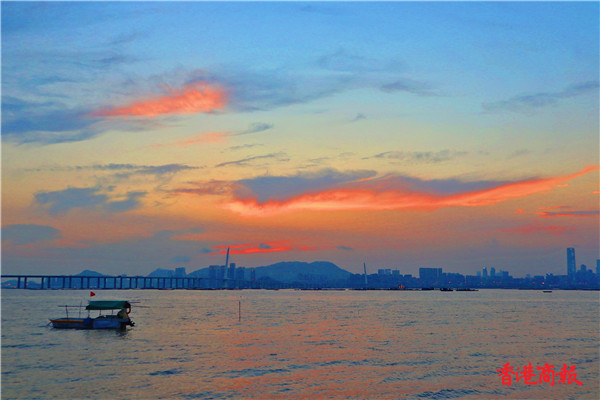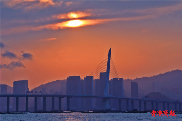流浮山面向深圳福田區,遠眺深圳灣大橋,大大的、像蛋黃一般紅的太陽徐徐而下,漸漸在深圳的高樓大廈間消失,而餘暉在海面閃閃金光,影友相機的快門聲不斷,拍下不少夕陽晚霞的美景。看着如此美景,有人感嘆:「夕陽無限好,只是近黃昏。」我卻認同朱自清的:「但得夕陽無限好,何須惆悵近黃昏。」( 馮瀚文攝 )