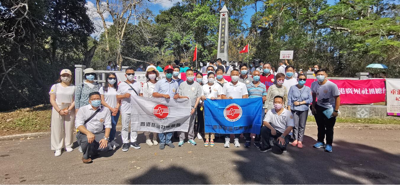 香港廣州社團總會、市屬團隊昨日舉辦「重溫抗日史蹟,緬懷革命先烈——紀念中國共產黨成立100周年活動」,逾百名成員前往沙頭角烏蛟騰抗日英烈紀念碑,向革命烈士獻花。總會主席、香港「抗日第一家」後人黃俊康現場分享了東江縱隊港九大隊及其家人的抗日故事,希望大家學習革命先烈的精神,珍惜來之不易的美好生活。
