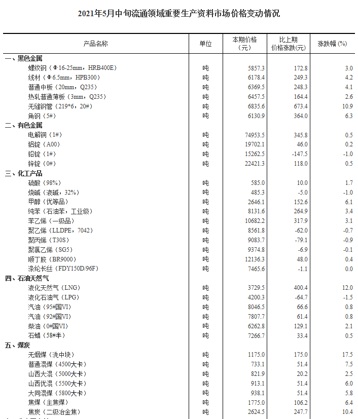 據統計局網站消息,據對全國流通領域9大類50種重要生產資料市場價格的監測顯示,2021年5月中旬與5月上旬相比,33種產品價格上漲,13種下降,4種持平。其中,生豬(外三元)價格為18.5元/千克,環比下降8.0%。