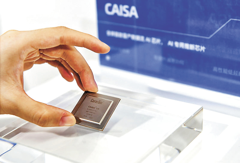 深圳鯤雲信息科技有限公司的工作人員展示該公司研發的數據流AI 芯片。新華社