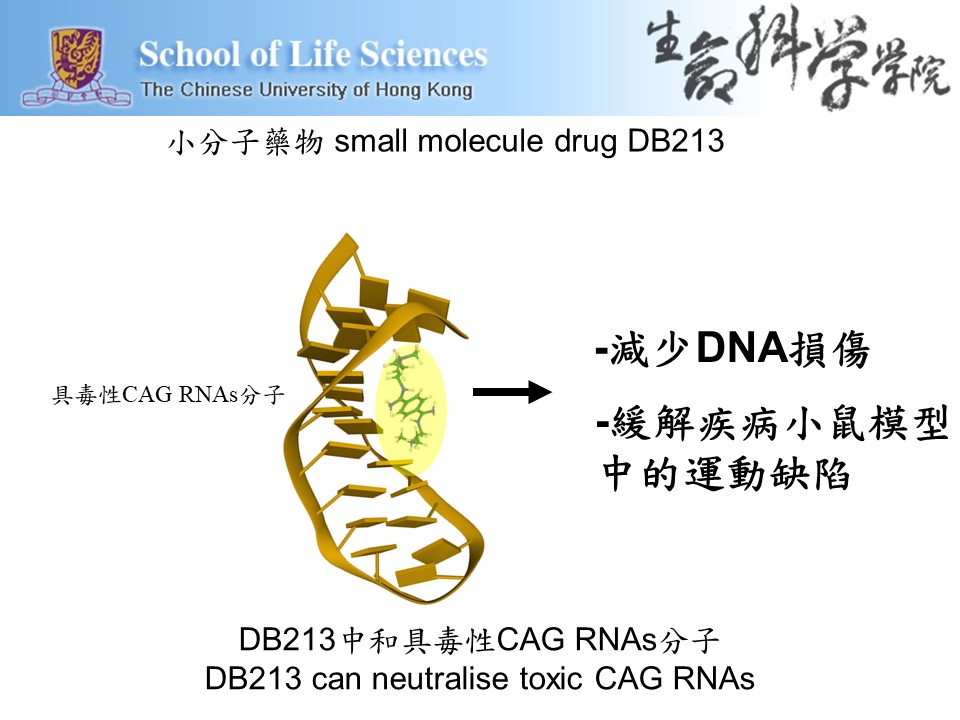 香港中文大學生命科學學院陳浩然與美國伊利諾伊大學厄巴納–香檳分校及意大利比薩大學科研團隊的合作研究揭示,一種新型毒性小分子CAG RNAs(簡稱sCAG)會嚴重破壞神經細胞DNA的穩定性,引發亨廷頓舞蹈症。