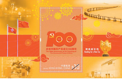 郵票小型張以「開啟新征程」為題,小型張內的中國國旗與香港特區區旗飄揚,祥雲與煙花代表香港祝賀中國共產党成立100周年。小型張還展示了1997年香港回歸、2008年奧林匹克運動會馬術比賽于香港舉行、2020年國家支援香港抗疫等歷史性時刻。