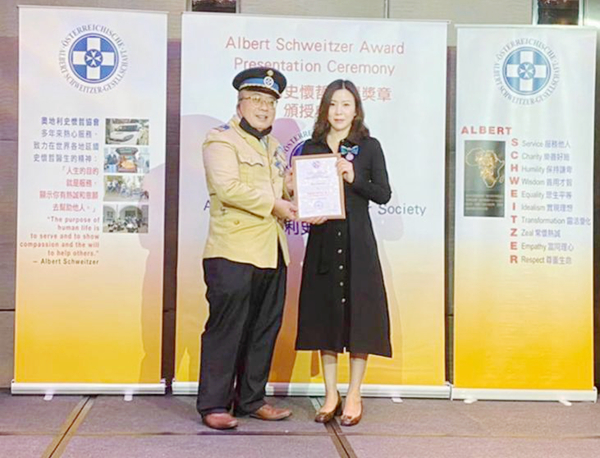 Lisa獲黎拿嘉教授頒授奧地利史懷哲抗疫大使獎。