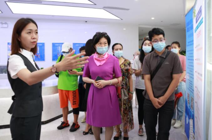 學習團一行首先來到東曉街道行政服務大廳和黨建MR虛擬展館。大廳採用「1+6」服務諮詢體系,「一窗式辦理、一網式服務」,加強了信息化系統的集約化建設。MR虛擬展館採用異形空間投影加全互動方案,以3D全息投影為載體,投射出中國共產黨百年歷史,「MR+黨史」的有機結合更具科技感,更富創造性。