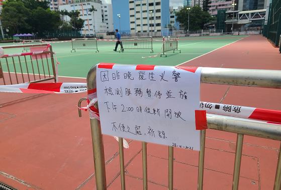 今日(28日)早上,有警察員駐守在現場,受火警影響,該流動檢測站上午服務暫停,將於下午2時許重開,有需要的市民可往蕙荃體育館。