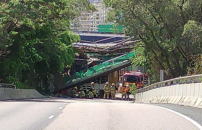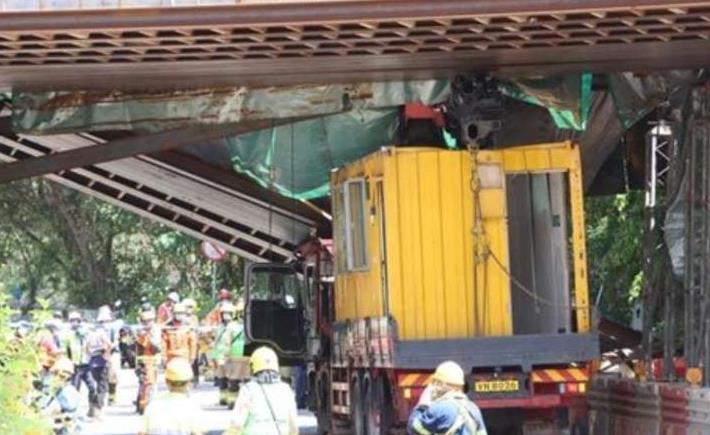 天橋金屬支架塌下壓著吊臂車駕駛倉。