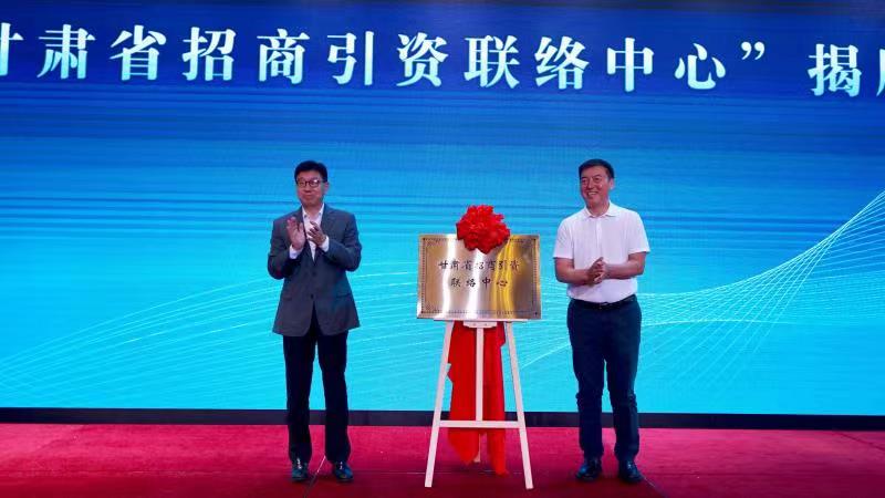 甘肅省副省長張錦剛(左)與深圳市甘肅商會會長陳濤(右)共同為「甘肅省招商引資聯絡中心」揭牌