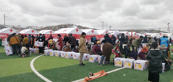 青海在22日發生7.4級地震,據報有逾2.3萬名受影響人士需要緊急逃難到集中安置點。圖源:青海省紅十字會