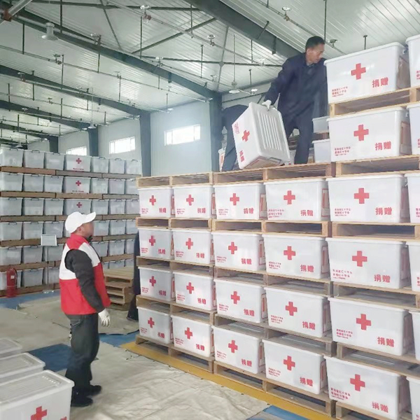 香港紅十字會從在當地預先儲備的物資中撥出2000個家庭包及3334張折疊床,以支援受青海地震影響之人士。圖源:青海省紅十字會